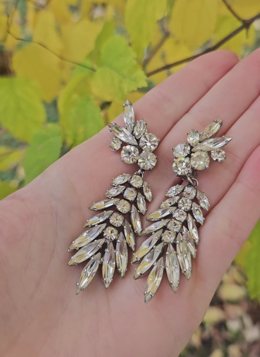 *Vintage treasure* Gustave Sherman mid-century crystal clear long clip-on earrings (signed)- As is