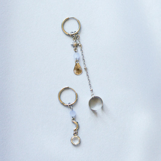 Luna boucles d'oreille asymétrique - Acier inoxydable