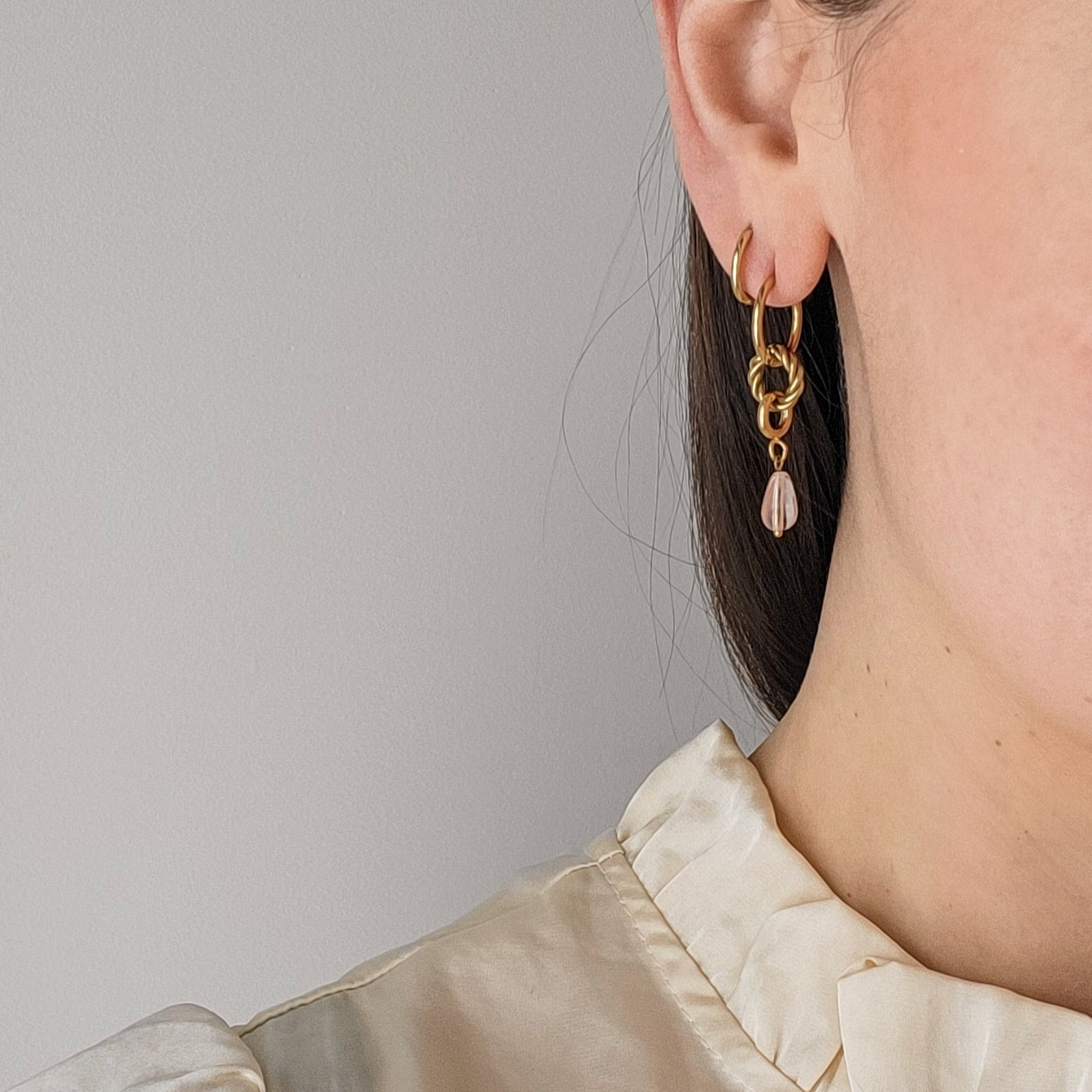 Portez vos boucles d'oreilles Anabelle de 3 manières différentes en vous amusant avec leurs pendentifs amovibles. Passez d'un look décontracté à un look glamour, le tout avec une seule paire de boucles d'oreilles !