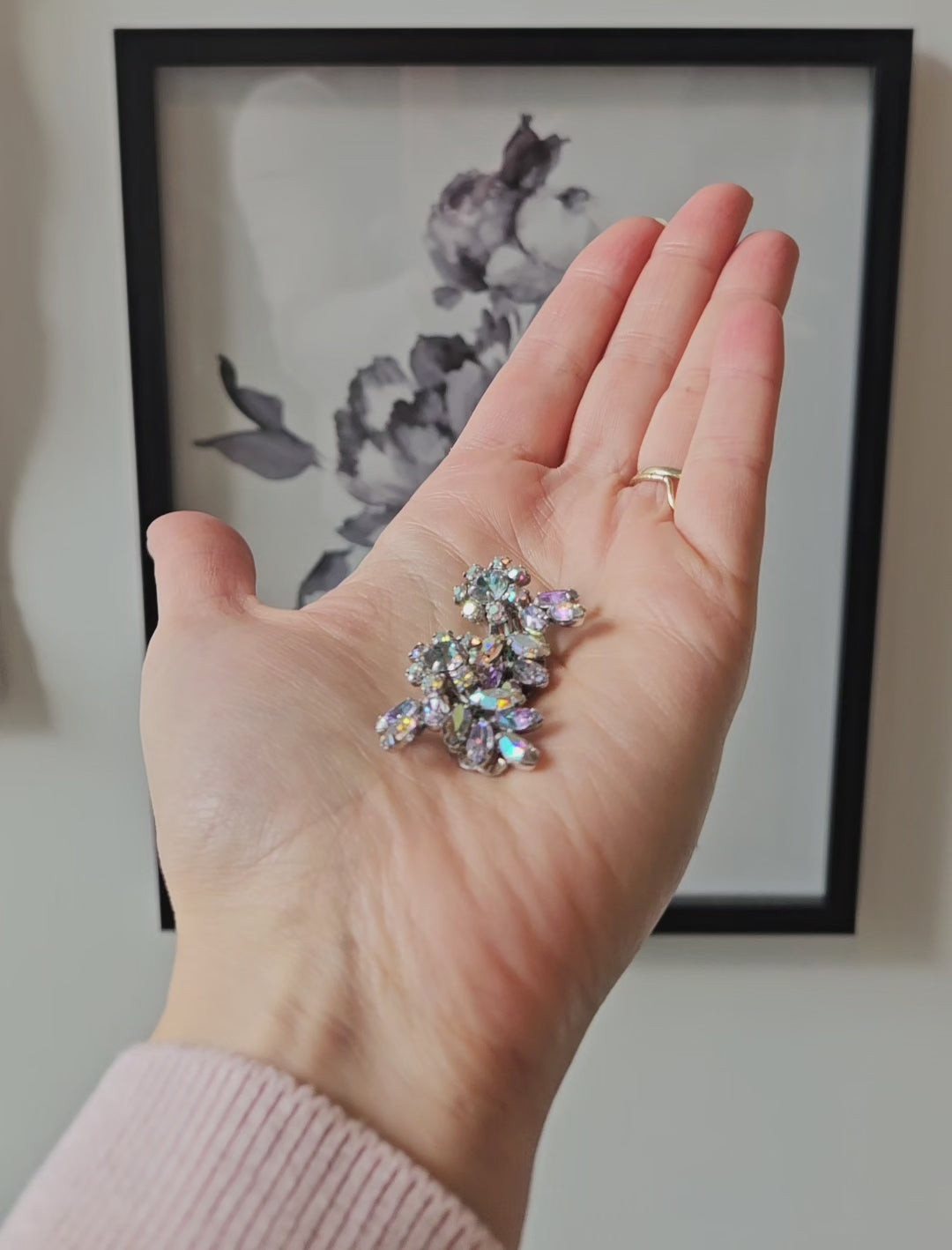 *Trésor vintage*Boucles d'oreilles clip-on crawler aurora borealis lavande Gustave Sherman années 50 (signées)