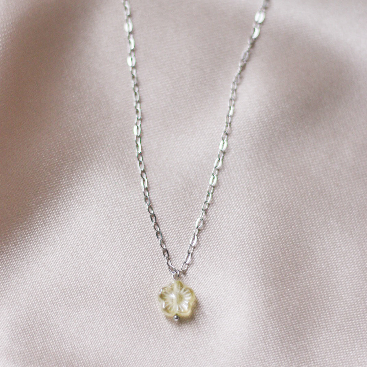 ◇ Delicate chain featuring a beautiful vintage glass bead shaped as a flower (10mm diameter).