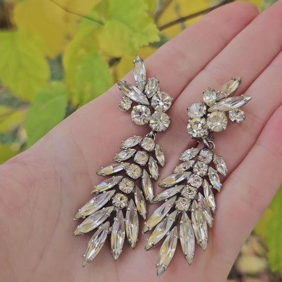 *Vintage treasure* Gustave Sherman mid-century crystal clear long clip-on earrings (signed)- As is