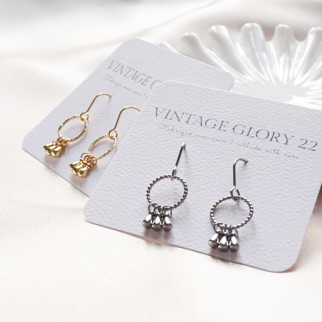 Dimensions : 12mm round ring & 5mm long teardrop charms.