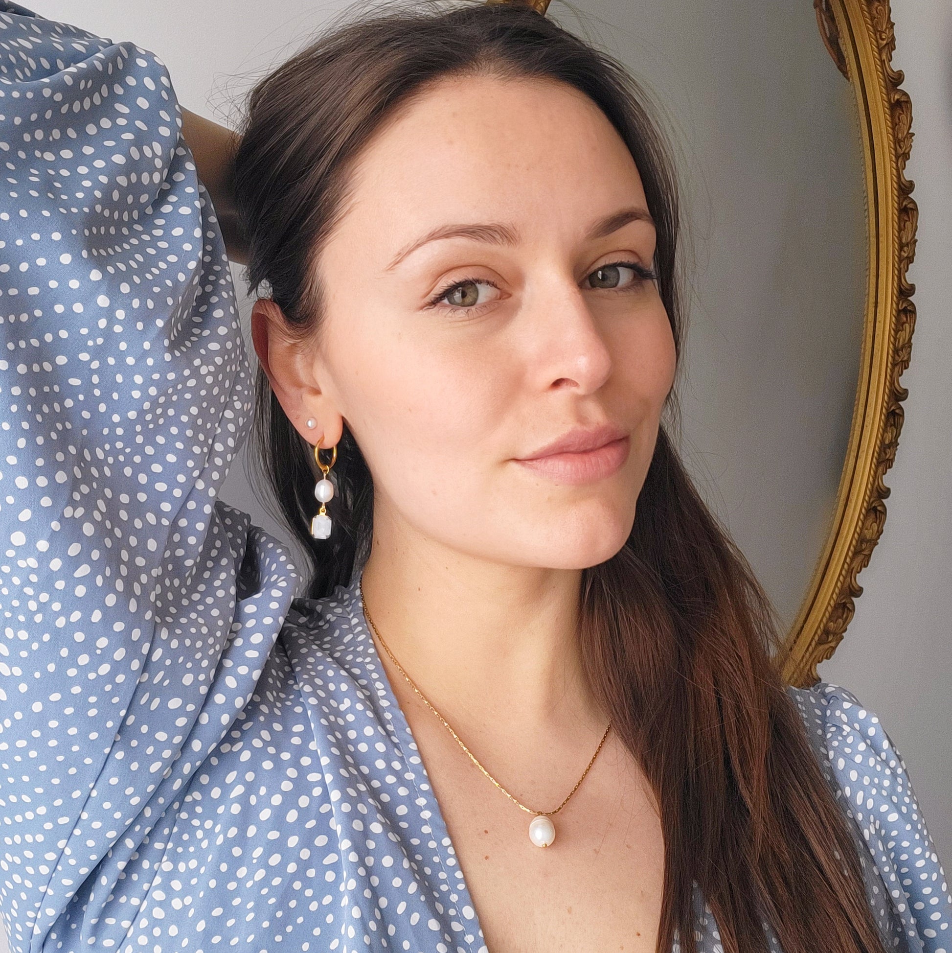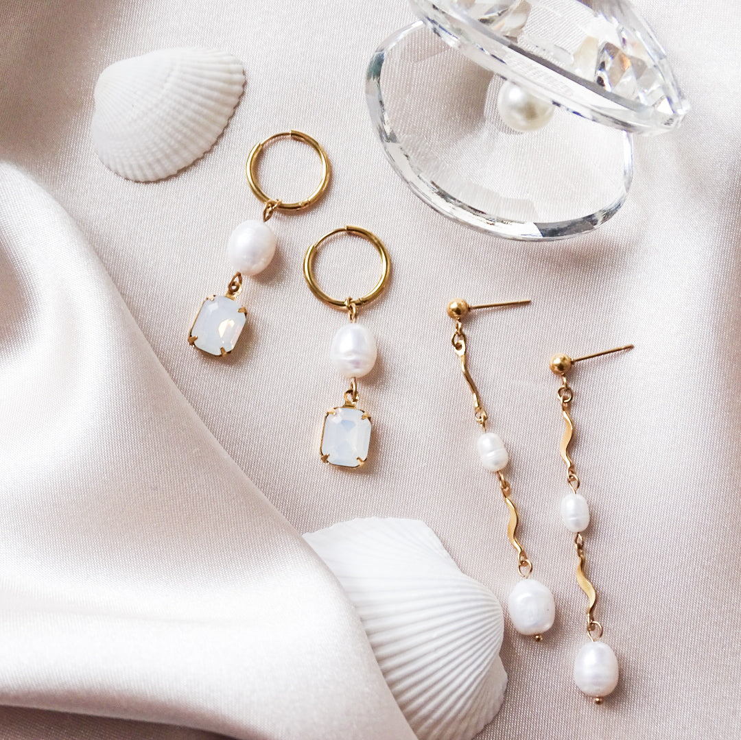 ◇ Stainless steel (hypoallergenic), natural freshwater pearls & vintage glass pendants (80's-2000's from Germany).