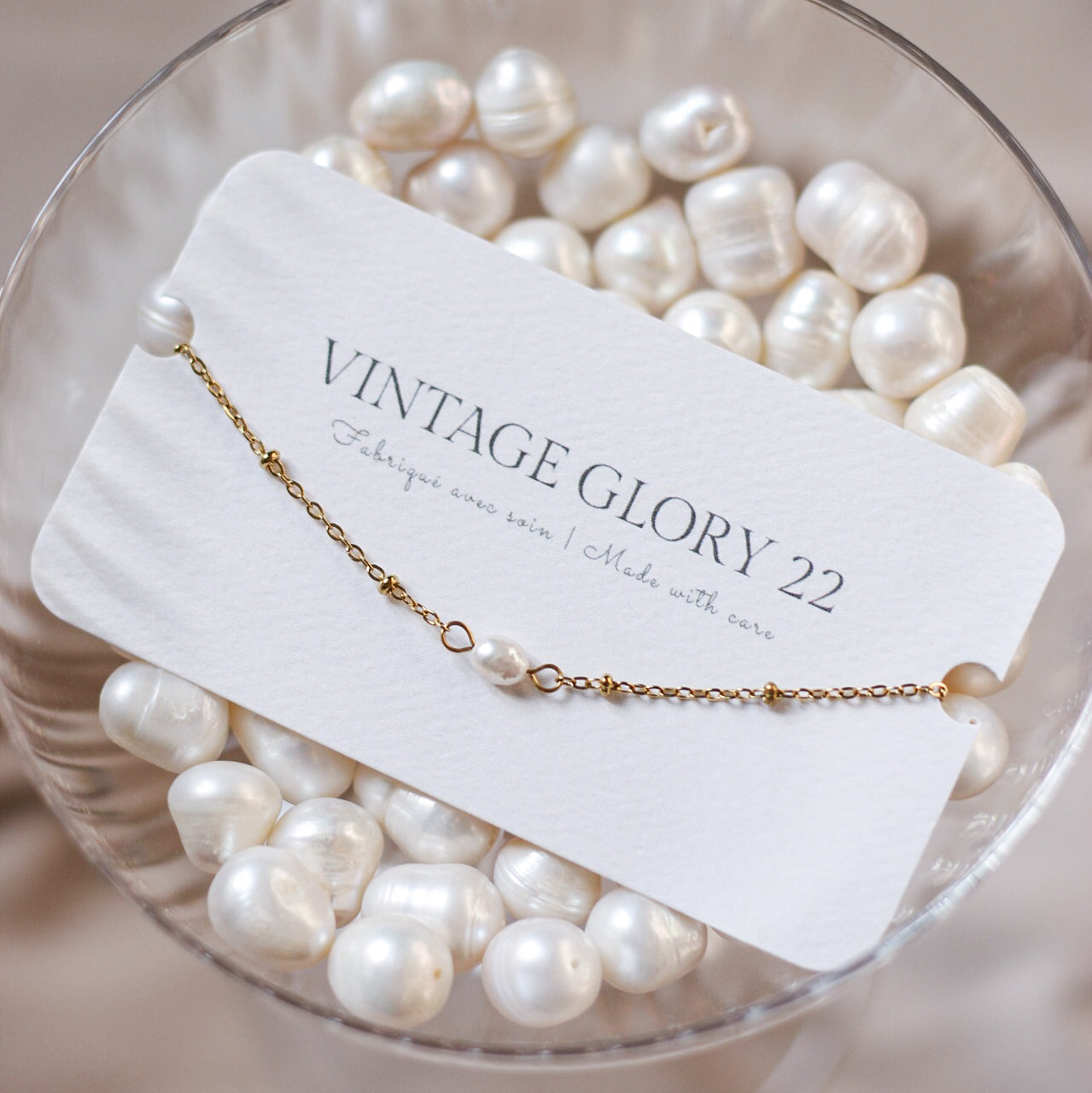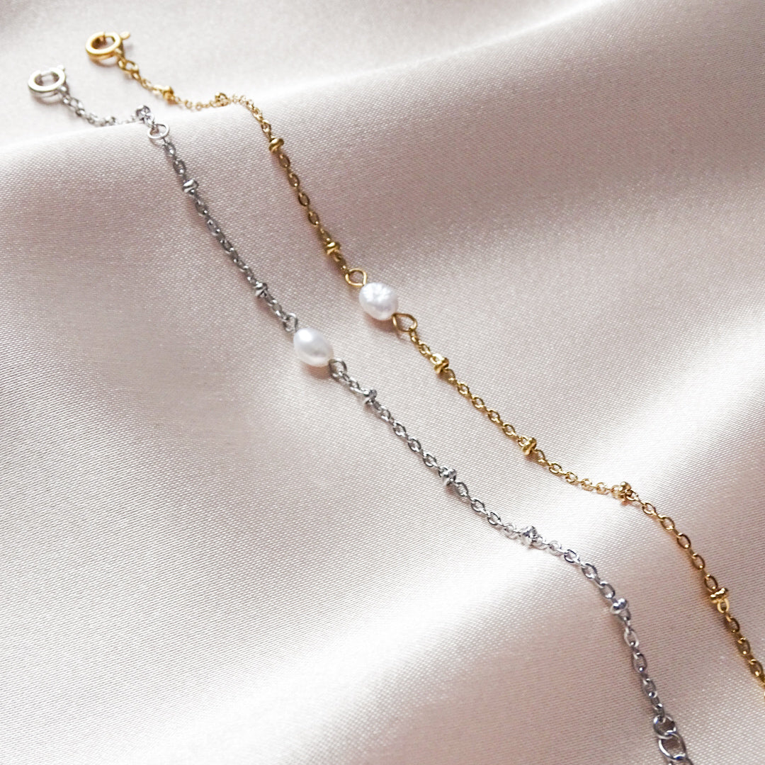 ◇ Features a delicate 18k gold plated or regular stainless steel chain (1.2mm thick) and a beautifully curated off-white freshwater pearl.
