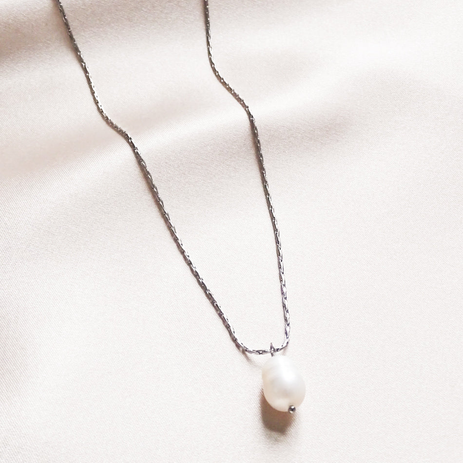 Beautiful and simple necklace design featuring a large baroque freshwater pearl.