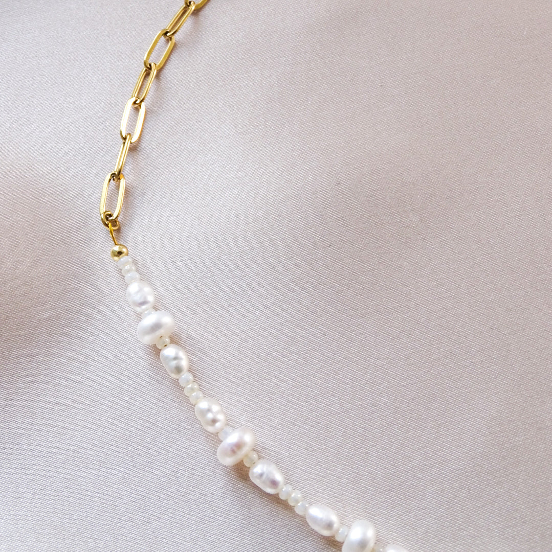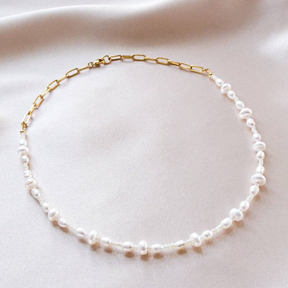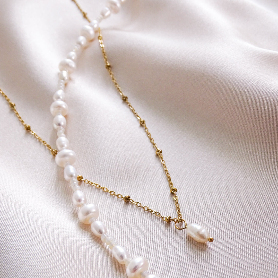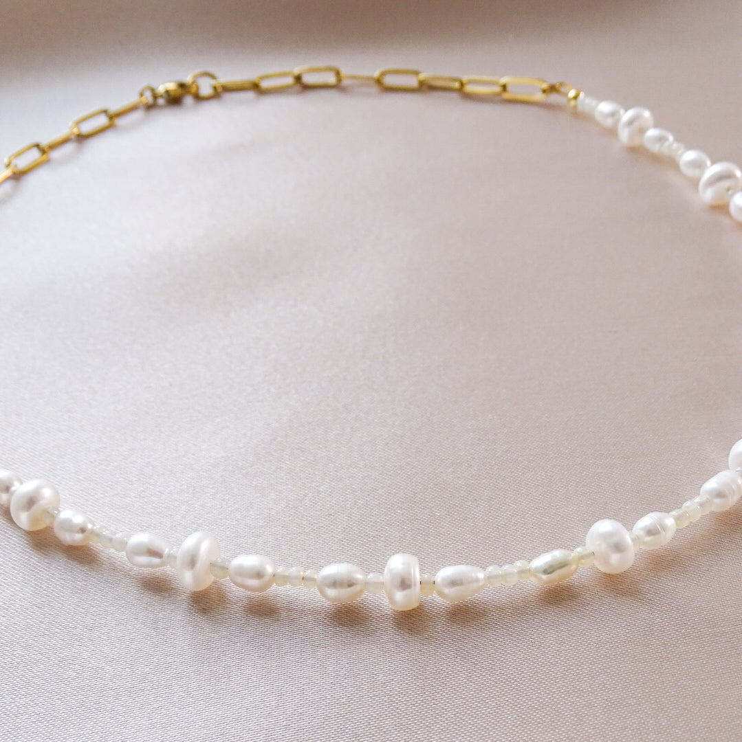 ◇ Natural freshwater pearls and off-white vintage Czech glass spacer beads.