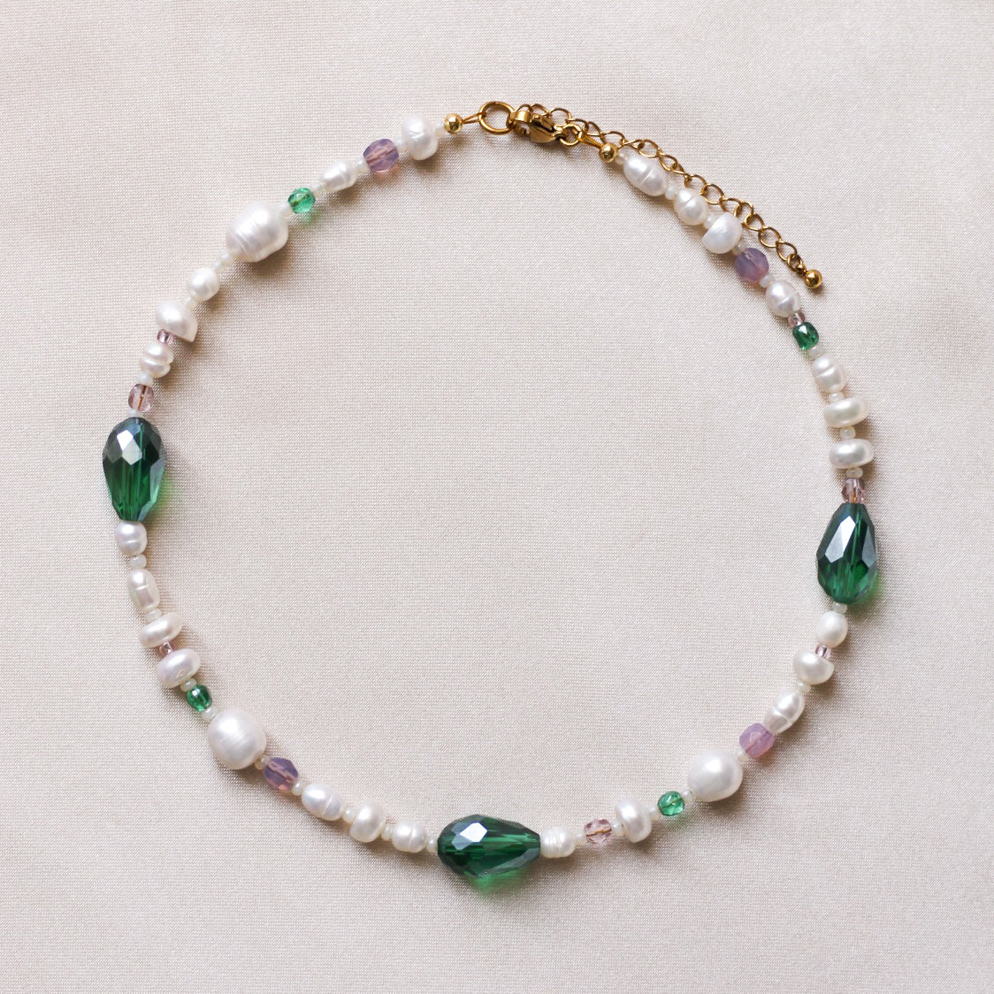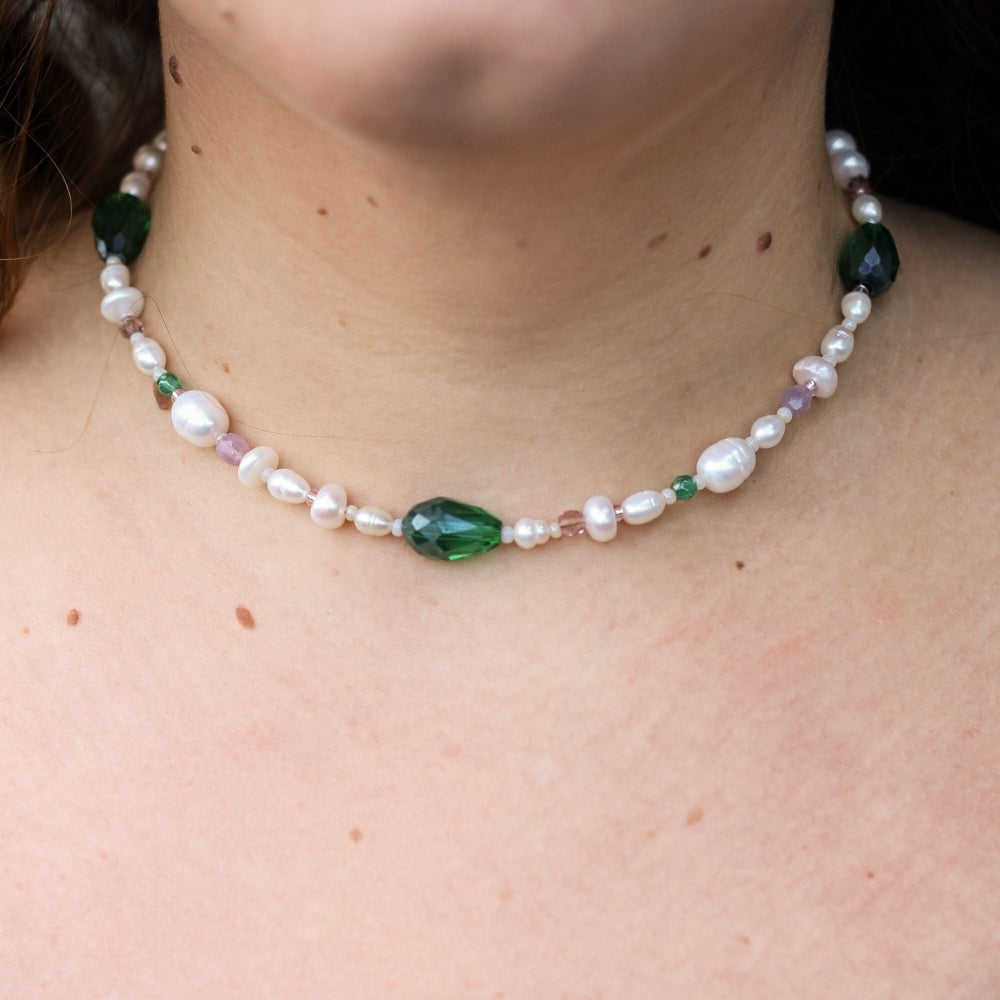 *New* Priscilla pearls & glass evening necklace - Green