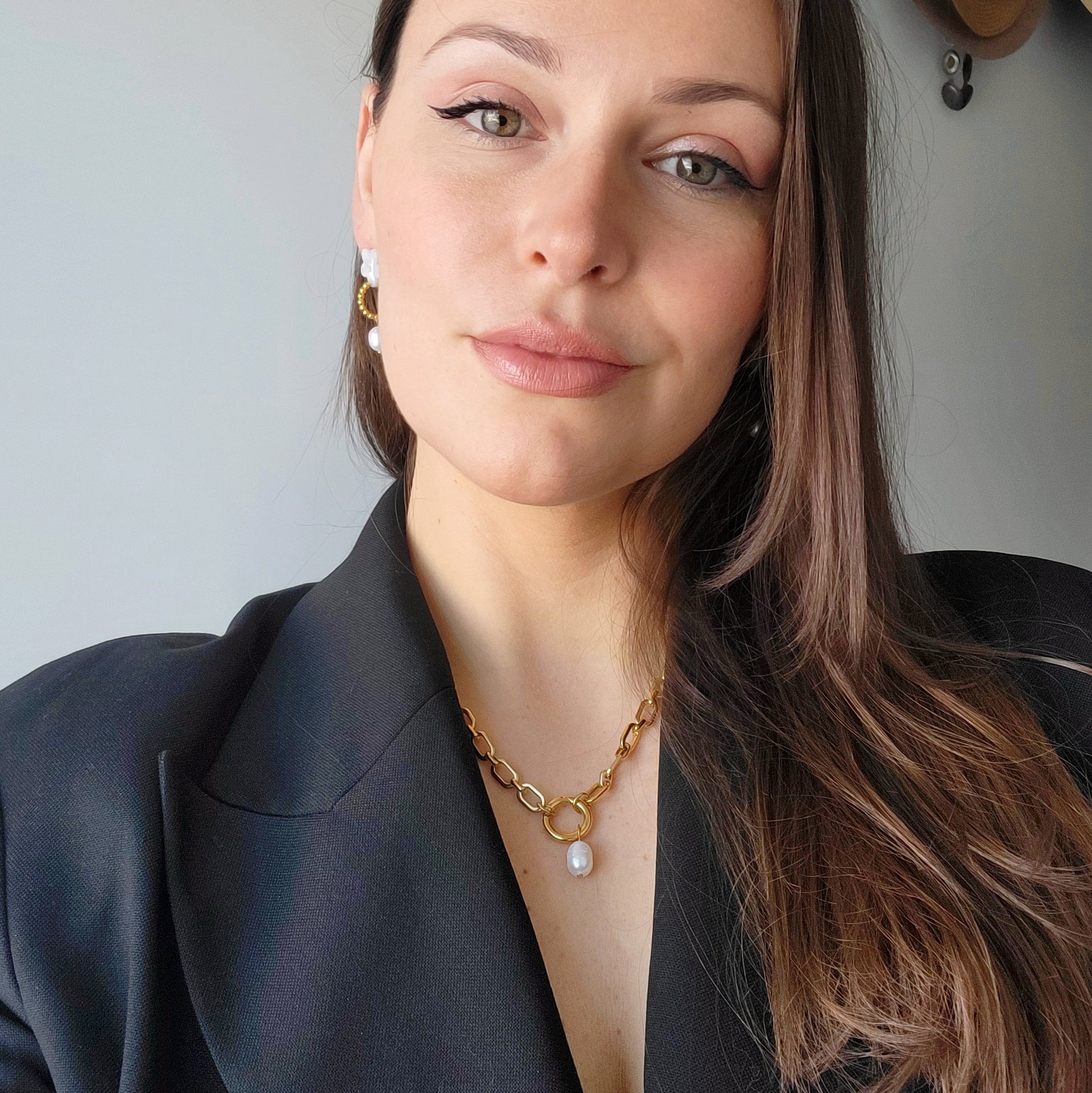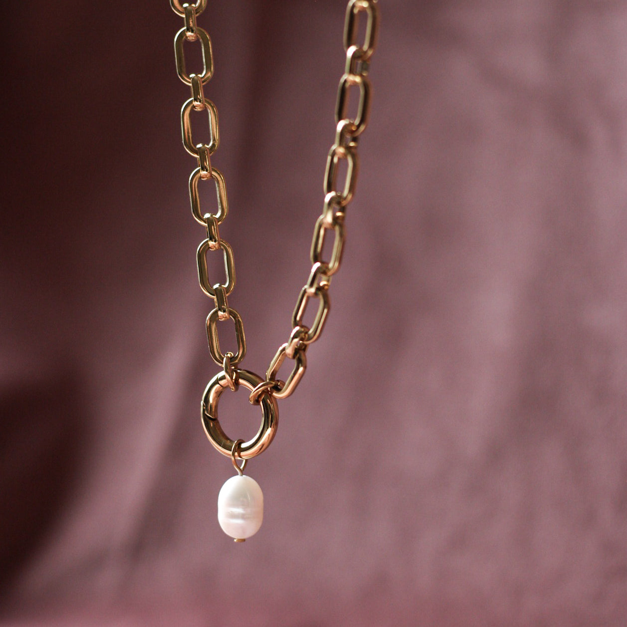 Our chunky cable chain Serena necklace is the statement piece everyone needs! You have the perfect combination of edgy and class. The pearl is removable if you don't feel like wearing it all the time and you can pop on other charms you might have at home.