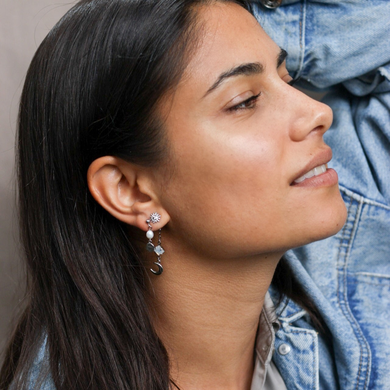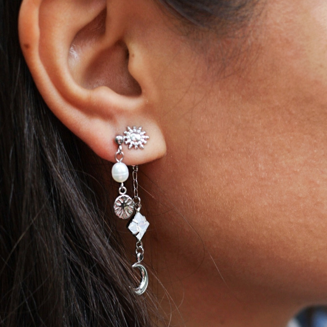 Meet out new 4 in 1 versatile Stella earrings featuring removable pendants. Create fun combinations with the rest of your ear stack with the help of this gorgeous asymmetrical design. See photos for all the different ways to wear them!