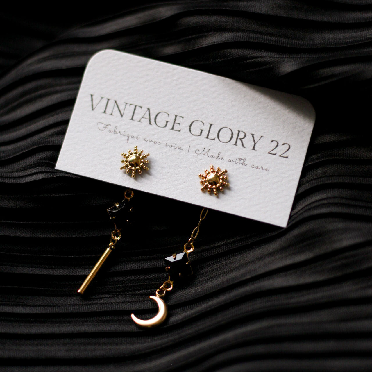 Total length in about 4.5cm for the earring with the moon and 4cm for the other earring.